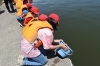 6月16日、大貫漁港で大貫小学校5年生によるヒラメの稚魚放流が行われました。