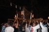 この祭礼では、一つの神輿を二間塚、山王、下飯野、上飯野、本郷の5区が順番で担ぎます。早朝から神輿が神社を出発し、各区の境に設けられた御旅所で受け渡され、各区を廻り19時に神社に宮入し、参道で何度ももまれていました。