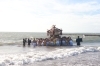 オブリ神事で奉納された鮮魚を飾った神輿と神馬は、それぞれ岩瀬海岸を目指して出発し、各地区の男衆が仁義引渡しを行いながら神輿を担ぎました。